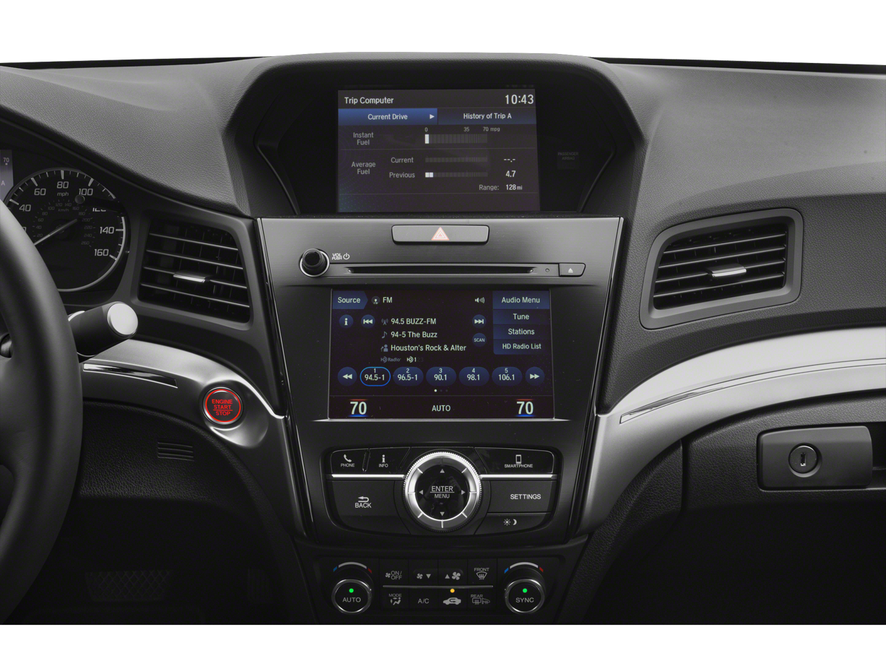 - Radio: Acura Premium Audio System -inc: 7 speakers including subwoofer, Speed-Sensitive Volume Compensation (SVC), USB audio interface, Bluetooth® streaming audio, SiriusXM radio, HD Radio, Pandora compatibility, Bluetooth® HandsFreeLink wireless telephone interface, color multi-information display, On Demand Multi-Use Display (ODMD), Siri eyes free, Apple CarPlay integration, Android Auto integration and SMS/MMS text message and email capability