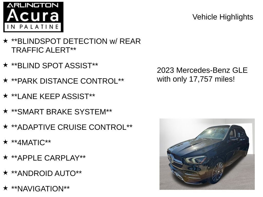 Discover the epitome of luxury and performance in this remarkable 2023 Mercedes-Benz GLE GLE 450 4MATIC®. With its sleek and sophisticated design, advanced technology, and exceptional driving dynamics, this SUV is the perfect companion for those seeking a truly exceptional automotive experience.